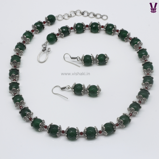Mrudhvi Green Agate Short Necklace Set