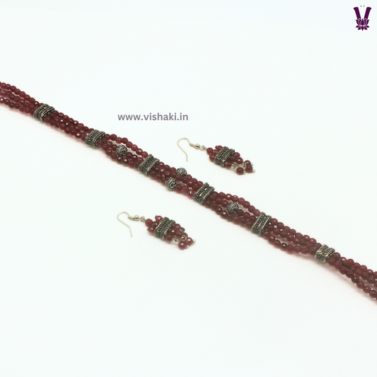 Mrudhvi Ruby Agate Choker Necklace Set