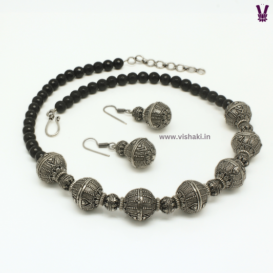 Mrudhvi Black and Brown Agate Choker Necklace Set