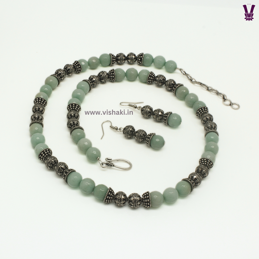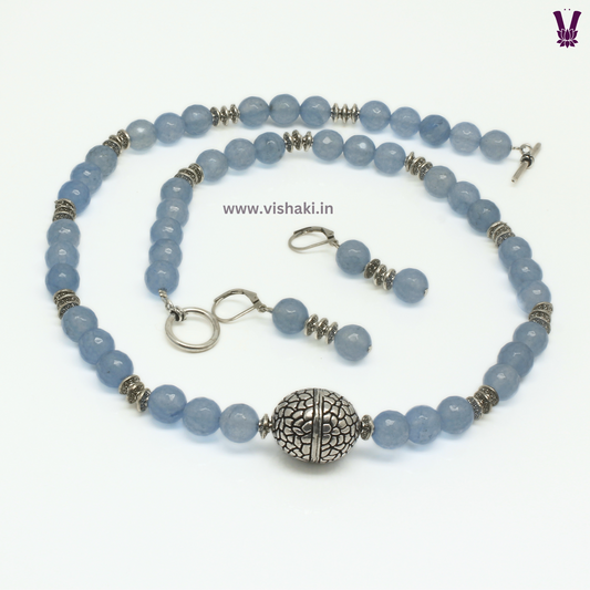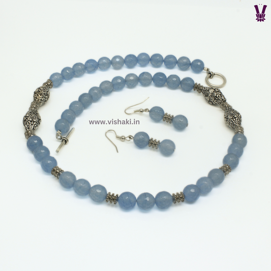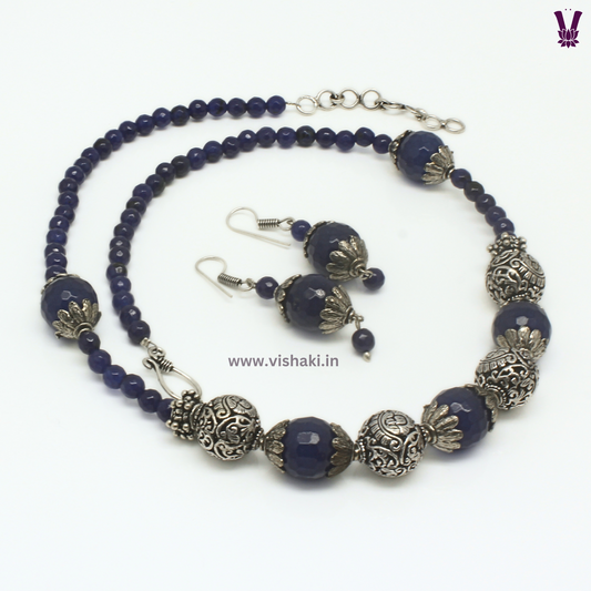 Mrudhvi Black and Light Blue Agate Long Necklace Set