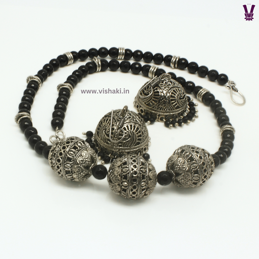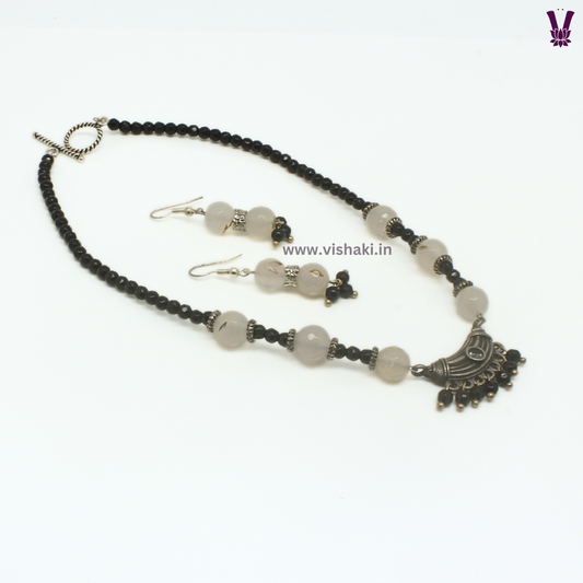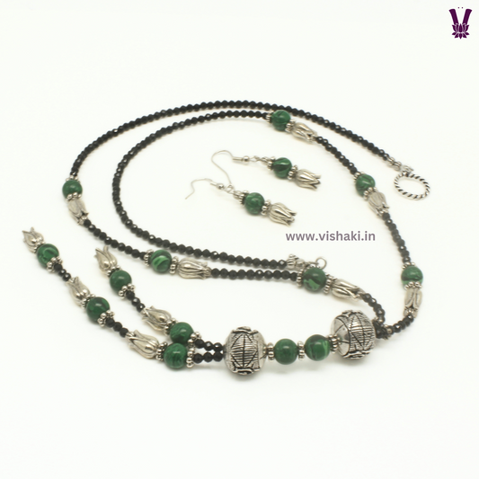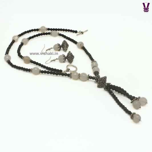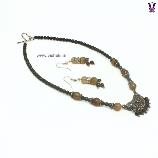 Mrudhvi Black and Brown Agate Long Necklace Set