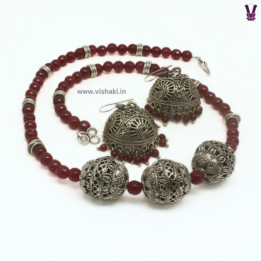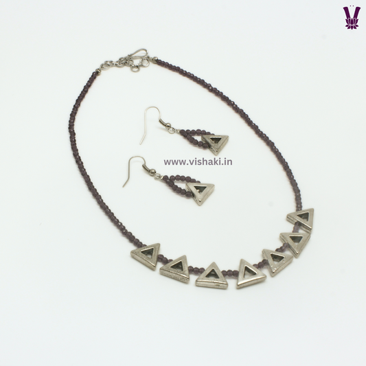 Mrudhvi Black and Brown Agate Choker Necklace Set