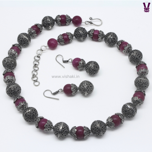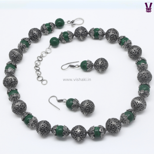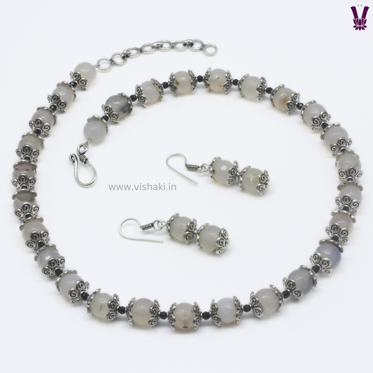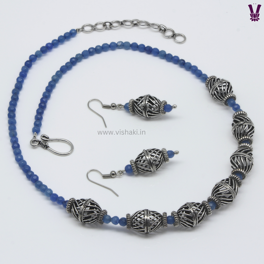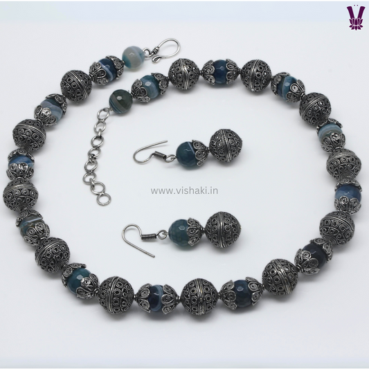 Mrudhvi Sea Blue Agate Short Necklace Set